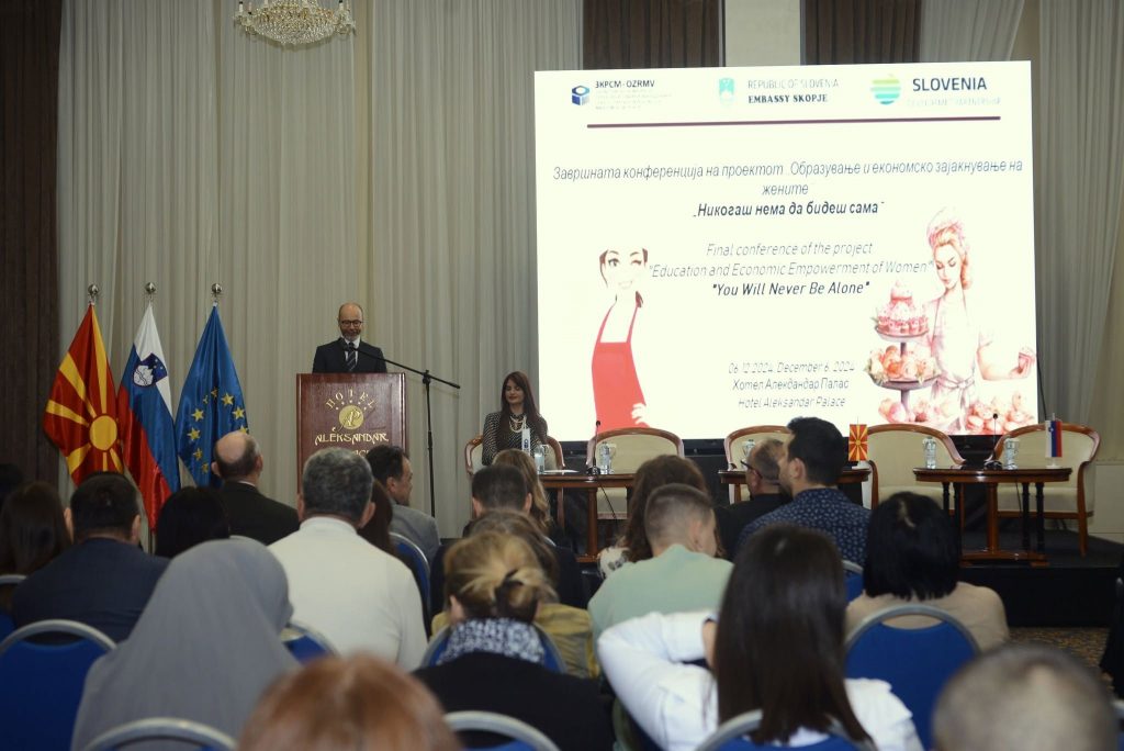 На 6 декември 2024 година, во хотел „Александар Палас“ во Скопје, се одржа завршната конференција „Никогаш нема да бидеш сама“ како дел од проектот „Образување и економско зајакнување на жените“. Настанот обедини над 50 учесници, вклучувајќи жени од рурални средини, ранливи категории, мајки на деца со попреченост и претставнички од различни националности.