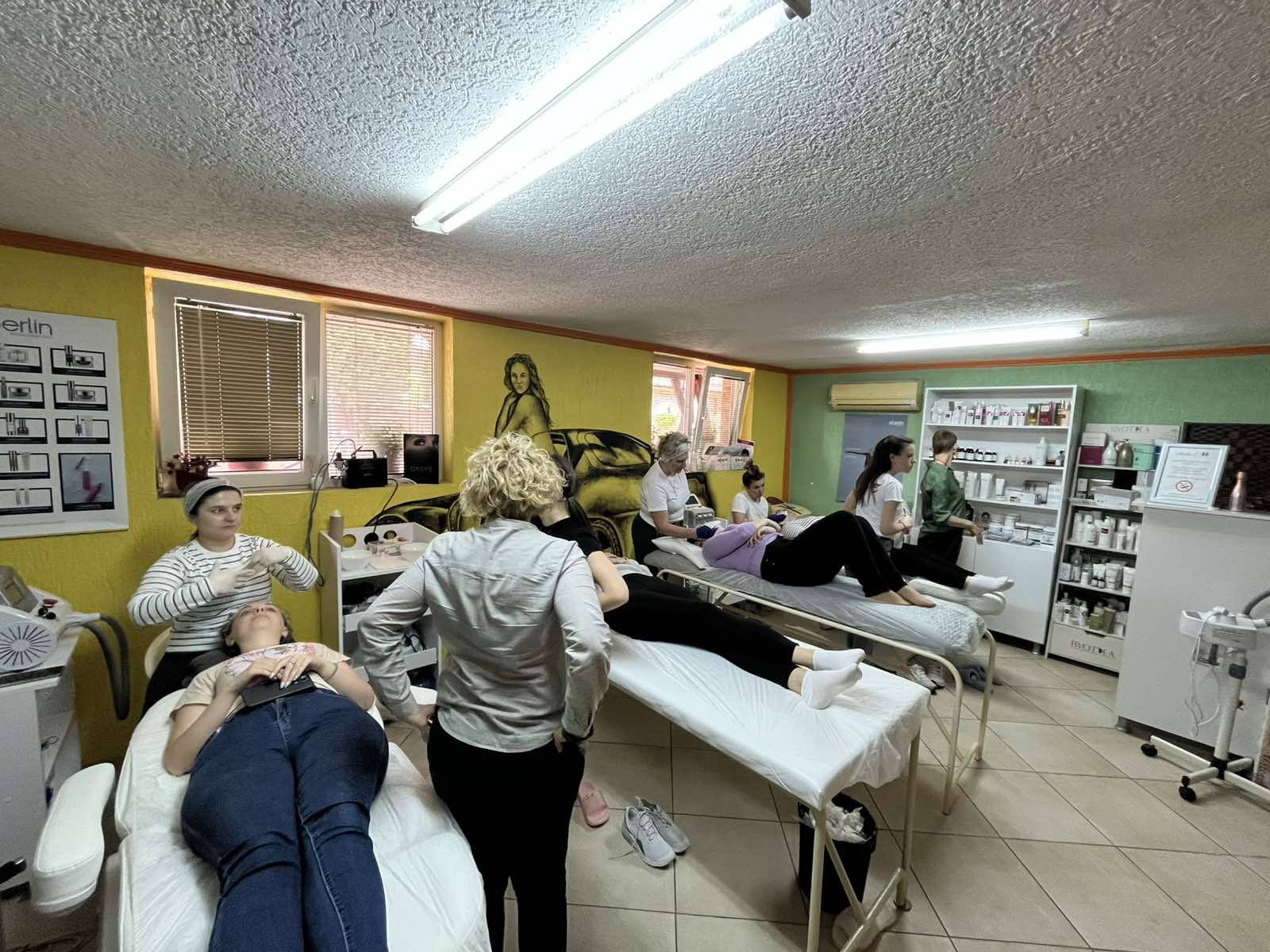 Нашите учеснички активно вежбаат техники за нега на лице, масажа, шминкање и многу повеќе! Под менторство на искусни обучувачи, се стекнуваат со знаења и самодоверба за успешна кариера во козметиката. Погледнете неколку моменти од практичениот дел.